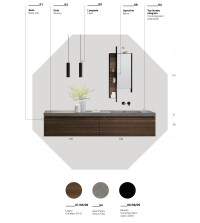 Melamine finish used for structures, front panels, open elements, tops and also for groove coating. Top 6 cm thick in Laminate Dekorativo 3D.