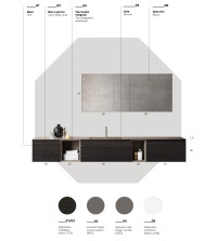 Wooden essences represent matter by excellence, giving warmth, strength and atmosphere to the bathroom area, mainly used for the door and drawer fronts, they are extremely enriching as back panels of open elements, and carefully mixed with Gres and lacquered finishes they contribute to create extremely refined furnishing projects.